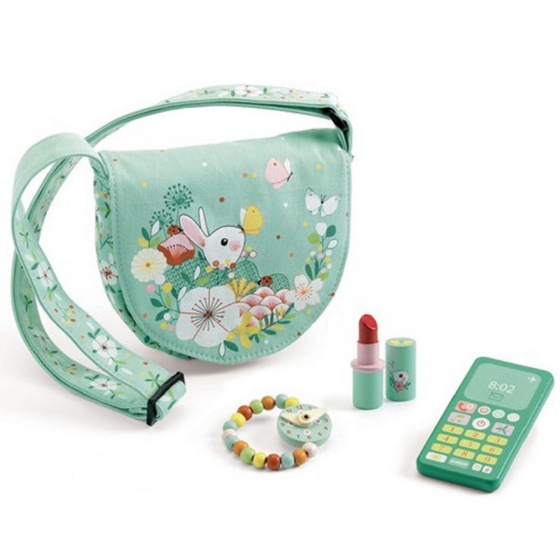 Ce sac à main trop mignon et ses accessoires en bois est idéal pour les enfants à partir de 3 ans.