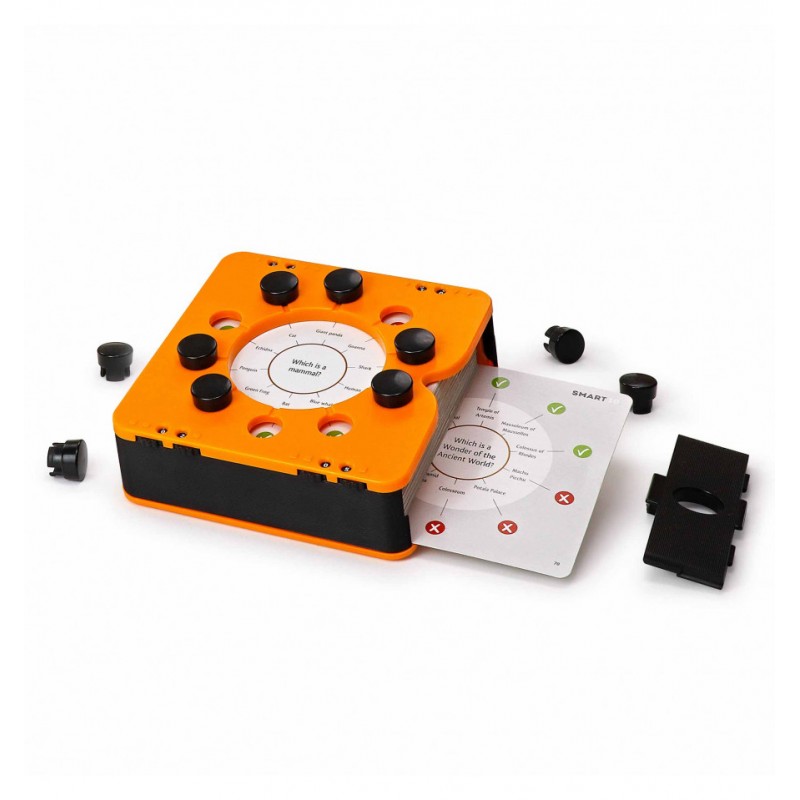 Contenu du jeu: 1 boîtier SMART10, avec 4 compteurs de points, 10 cache-réponses, 100 cartes questions doubles-faces, 1 règle du jeu