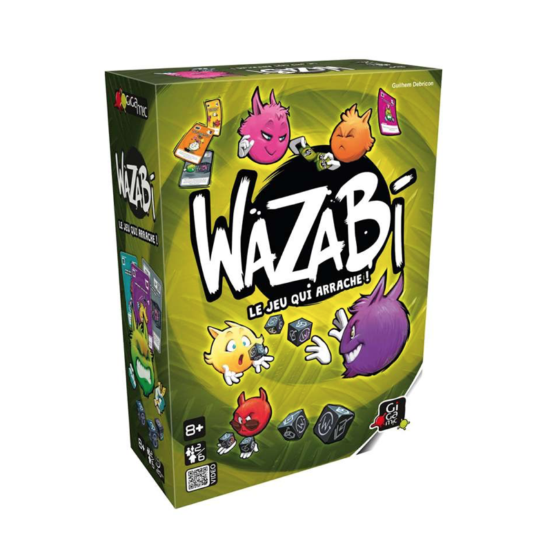 Découvrez Wazabi, un jeu Gigamic où vous devrez vous débarrasser de vos dés ! Les cartes jouées par vos adversaires dépendent de votre tirage aux dés et elles modifient sans cesse le nombre de cartes et de dés de chacun. Un jeu de chance et de réflexion où les rapports de force changent constamment !