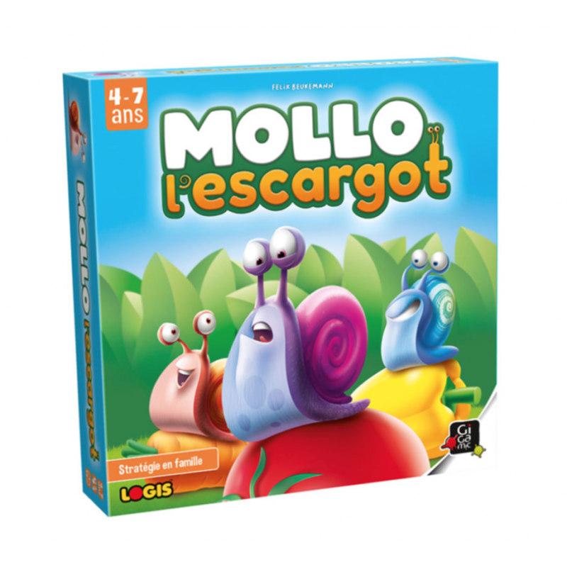 Pour gagner cette course, il faut être le dernier ! Jeu de la marque Gigamic, Mollo l'escargot fait l'éloge de la lenteur ! Chaque joueur doit user de la meilleure stratégie pour avancer le moins vite possible et rester dans le potager.