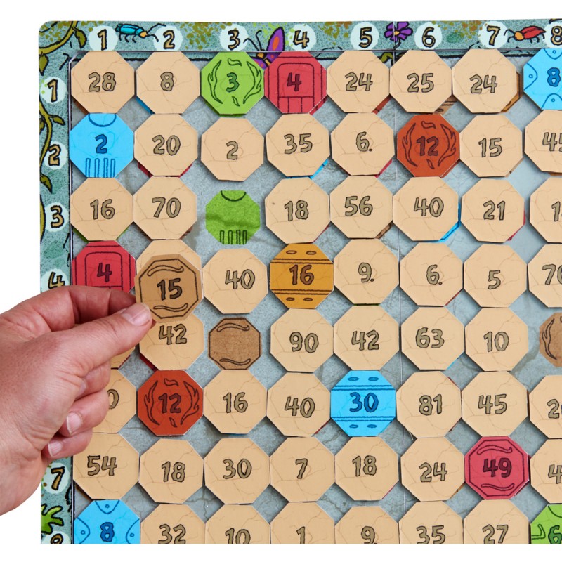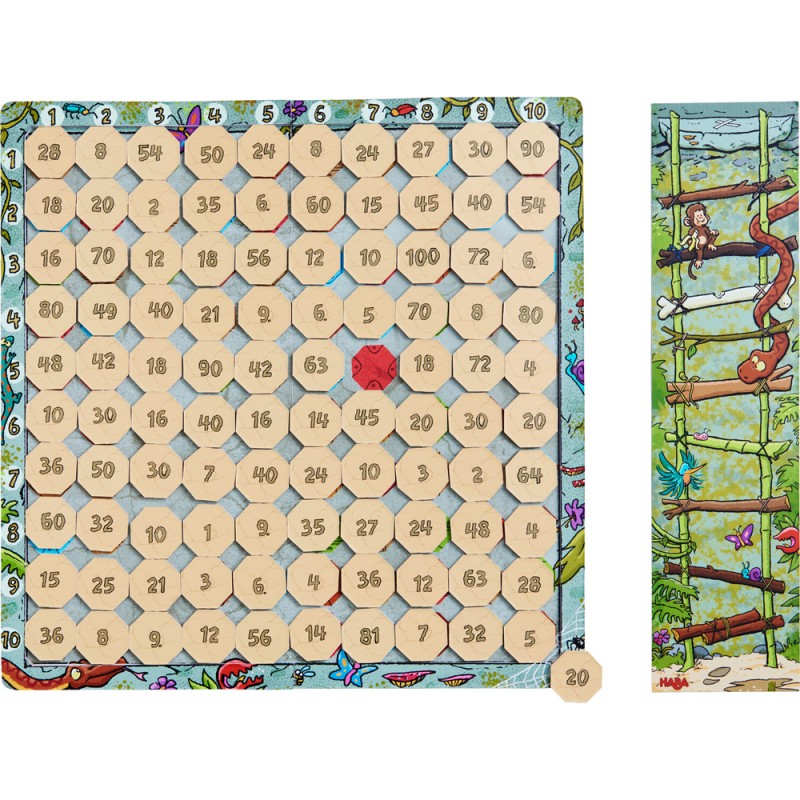 L'aventure 1x1 se passe tout au fond de l’impénétrable forêt tropicale où se trouve une ville légendaire faite d'or. L’entrée de cette ville est bloquée par une énorme porte qui ne s’ouvrira que si des énigmes sont résolues. Les capacités de calcul des joueurs vont être mises à l'épreuve : si vous multipliez correctement et trouvez les bons nombres, le mur aux énigmes se remplira avec vos résultats. Vous pourrez facilement contrôler avec le verso des plaquettes si vous avez bien compté ou non. Celui qui compte le mieux remporte cette passionnante expédition dans le monde de la multiplication.>