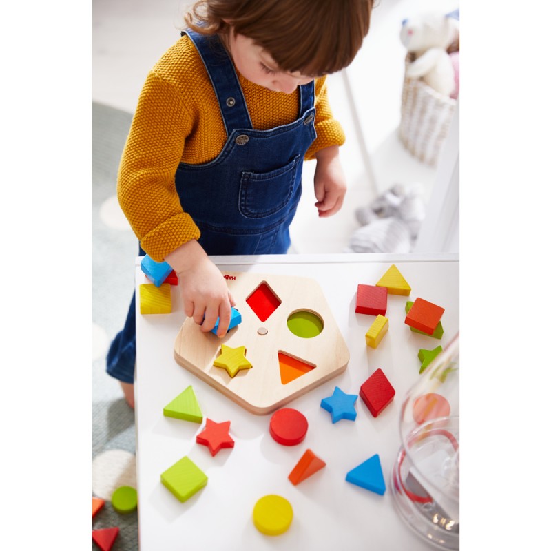 Voici un jouet d'éveil et de motricité en bois pour les enfants à partir de 2 ans signé Haba ! Il stimule la reconnaissance des couleurs et des formes géométriques et il la motricité fine. L’enfant s'entraîne à classer des formes et à reconnaître des couleurs de manière ludique et sans s’en rendre compte. Un jeu multicolore qui tourne.