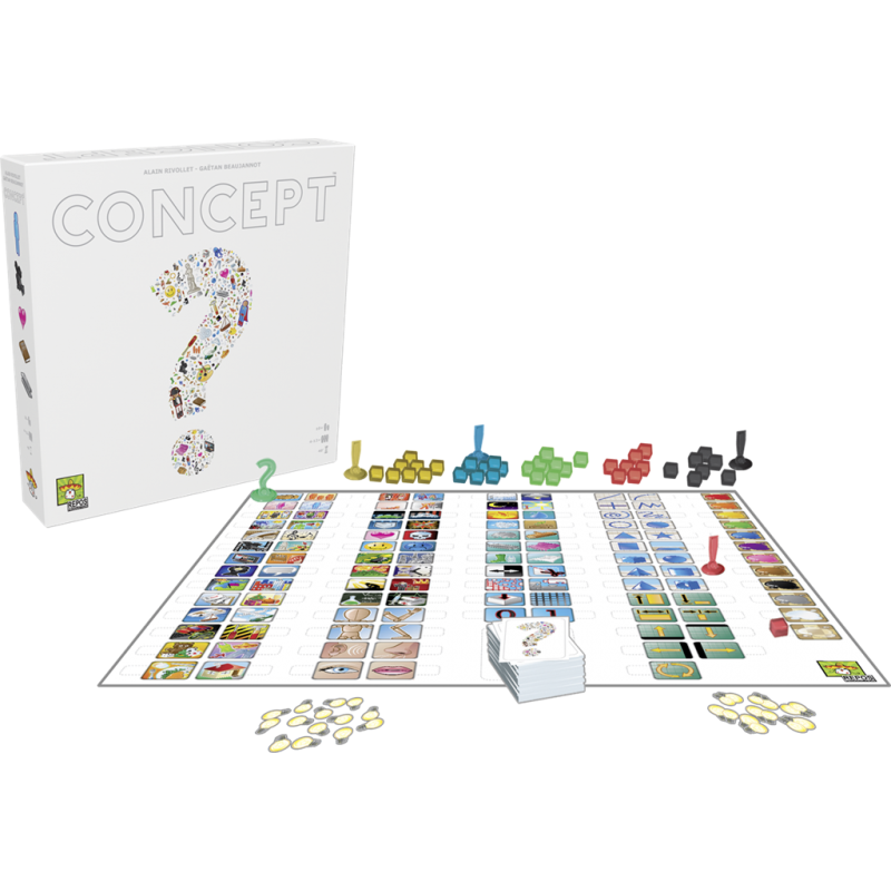 Concept est un jeu à la mécanique unique ! Ne parlez pas, ne mimez pas, mais utilisez des symboles, combinez les pour faire deviner à votre équipe le mot ou la phrase que vous avez choisi ! Placez des pions sur différentes icônes du plateau et grâce aux nombreuses icônes et aux possibilités offertes par leurs interactions, faites deviner de plusieurs façons chaque mot... attention, ce ne sont pas les concepts les plus simples qui sont les plus faciles à faire deviner.